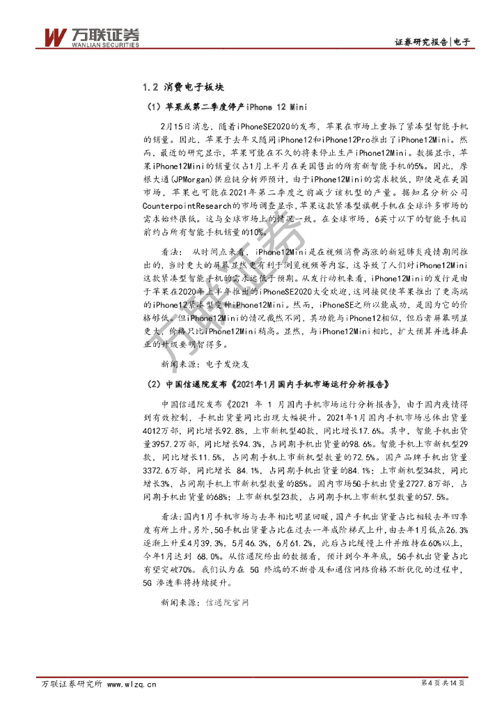 万联证券:电子行业周观点:车用芯片全球短缺,5G手机出货量大幅提升.pdf