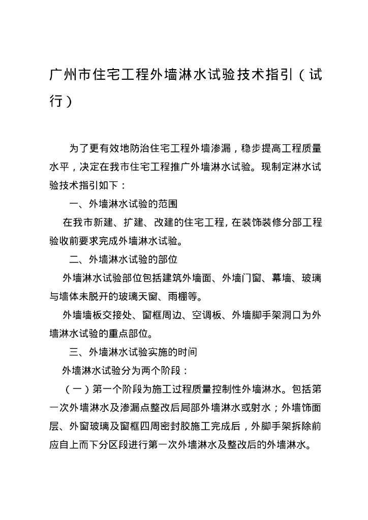 广州市住宅工程外墙淋水试验技术指引(试行).doc