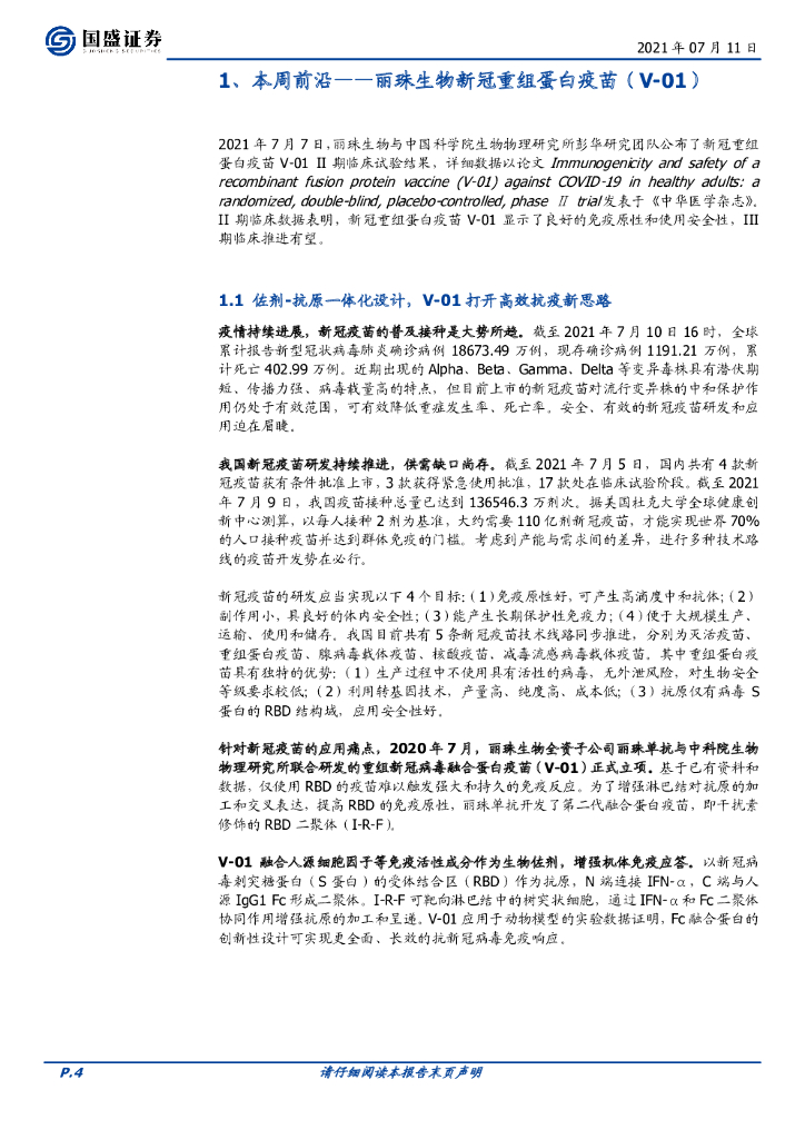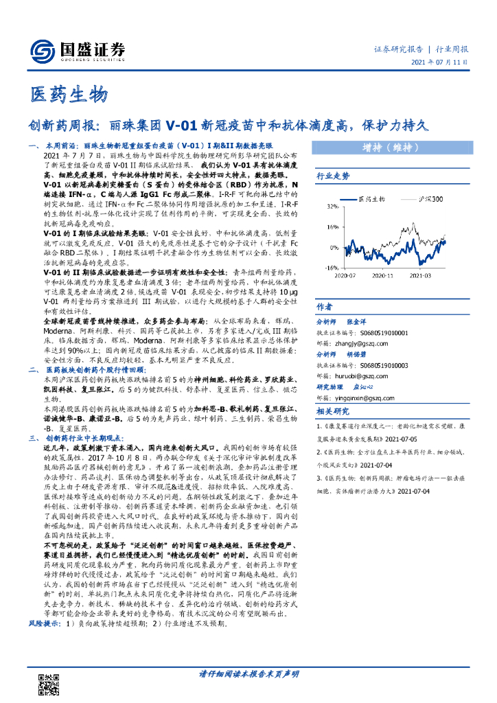 国盛证券:医药生物:创新药周报:丽珠集团V-01新冠疫苗中和抗体滴度高,保护力持久.pdf