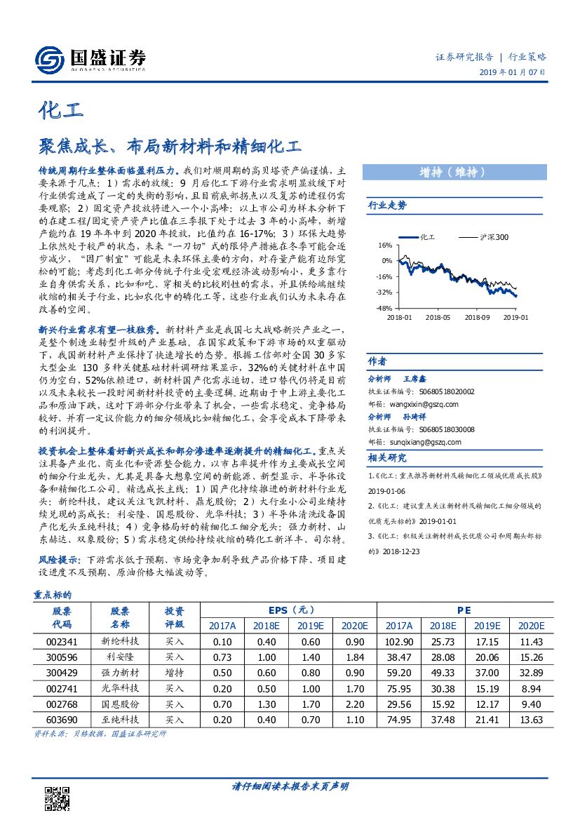 国盛证券:化工行业策略:聚焦成长、布局新材料和精细化工.pdf