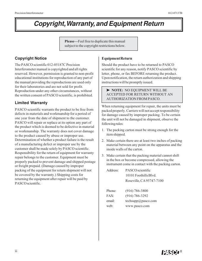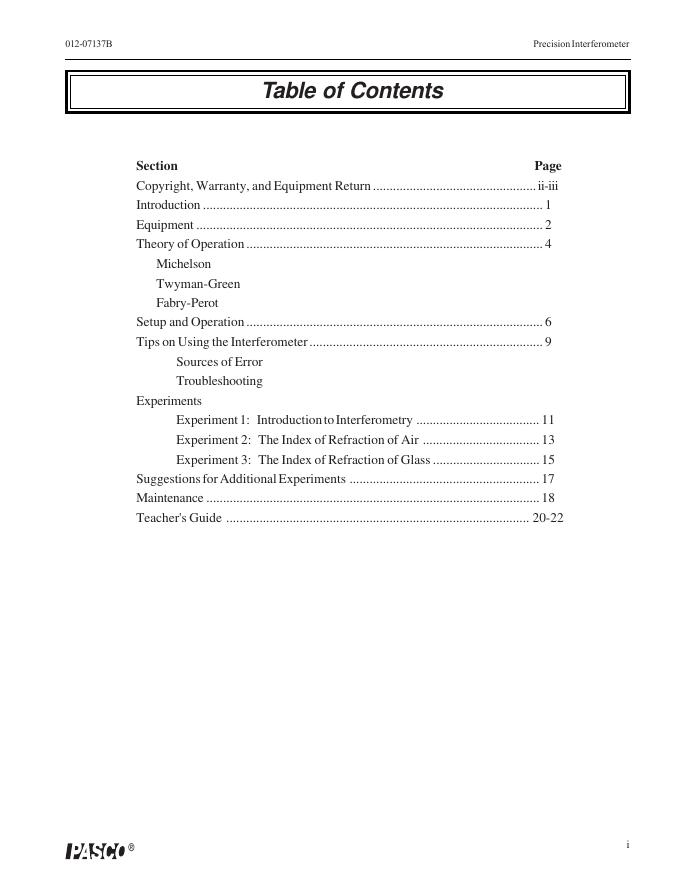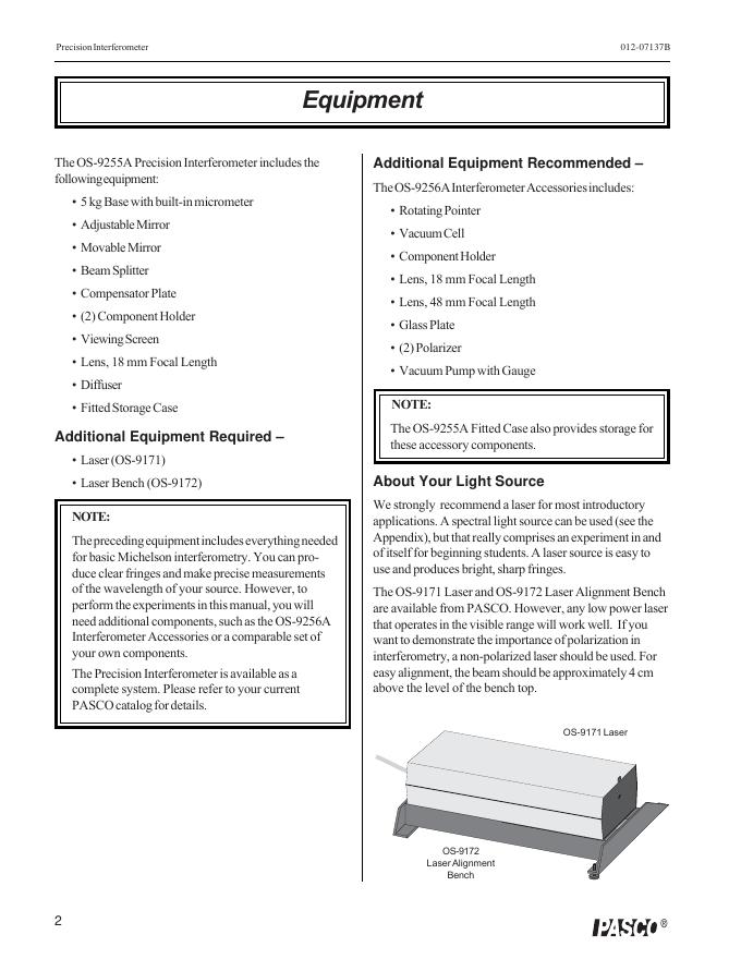 PASCO scientific Models OS-9255A到OS-9258A 012-07137B精密干涉仪指南和实验指导.pdf