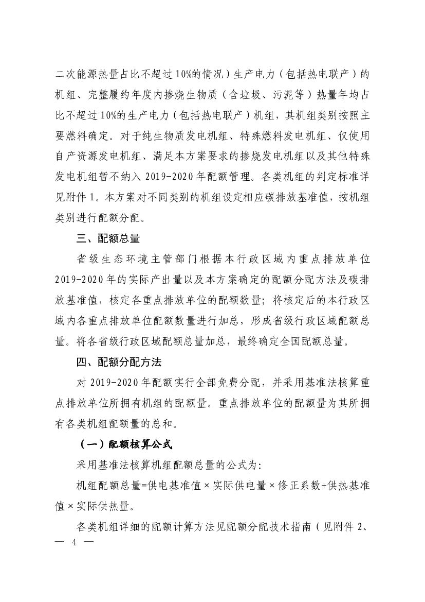 2019-2020 年全国碳排放权交易配额总量设定与分配实施方案( 发电行业).pdf