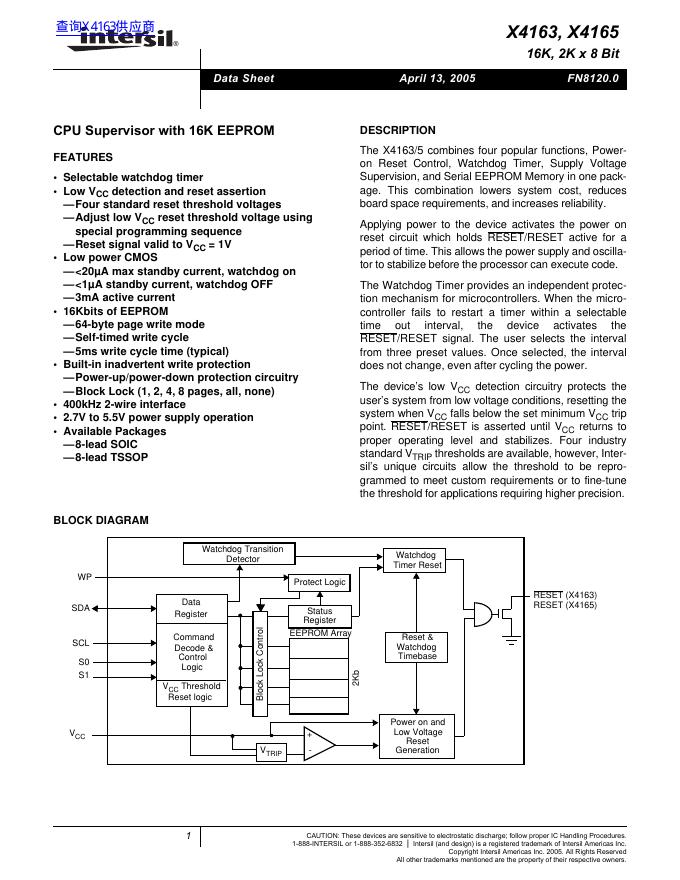intersil X4163, X4165 16K, 2K x 8 Bit 数据手册.pdf