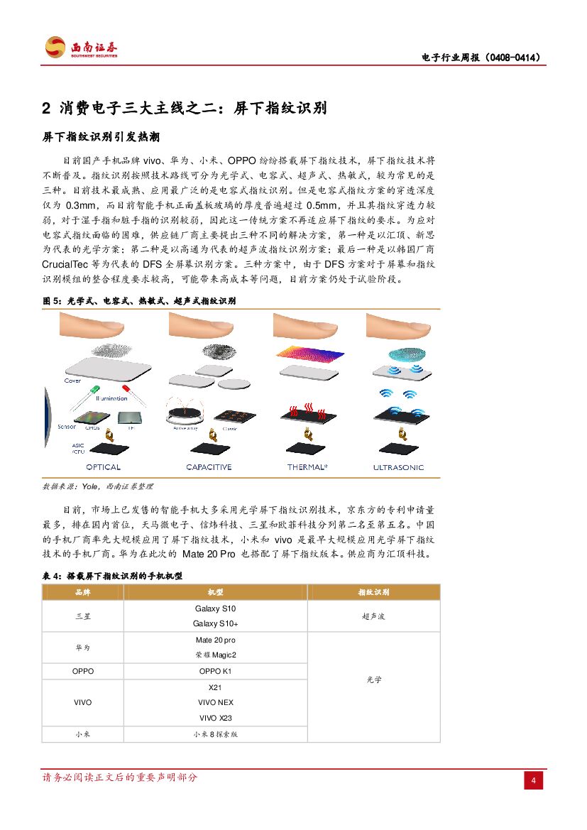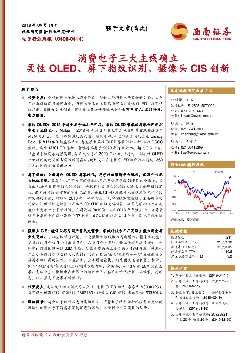 西南证券:电子行业周报:消费电子三大主线确立 柔性OLED、屏下指纹识别、摄像头CIS创新.pdf