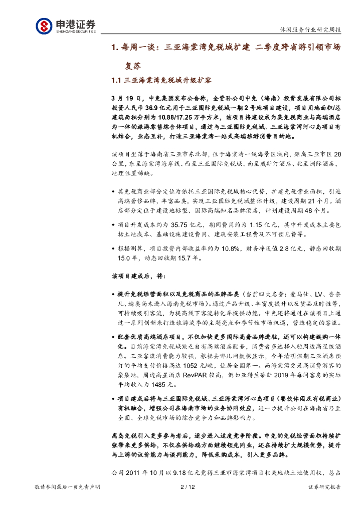 申港证券:休闲服务行业周报:三亚海棠湾免税城扩建 二季度跨省游引领市场复苏.pdf