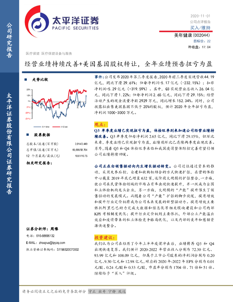太平洋证券:美年健康(002044)-经营业绩持续改善+美因基因股权转让,全年业绩预告扭亏为盈.pdf