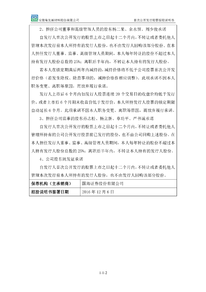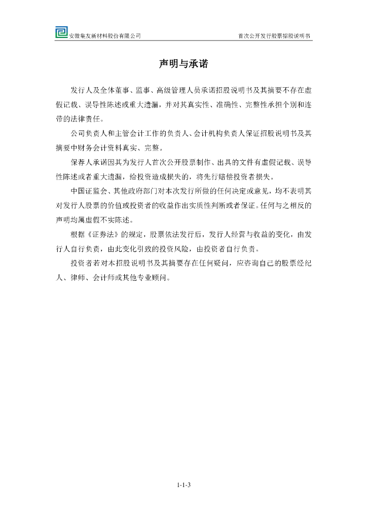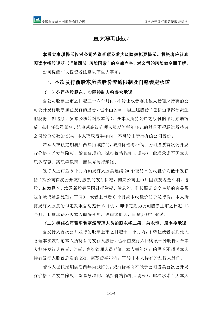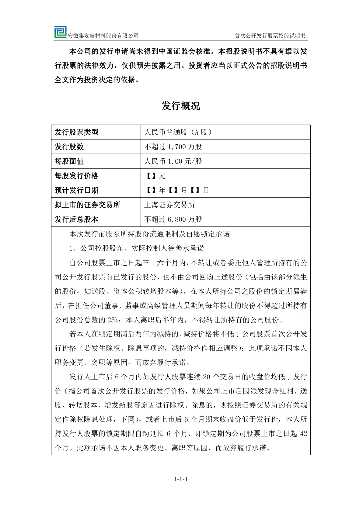 安徽集友新材料股份有限公司上交所主板IPO上市招股说明书.pdf