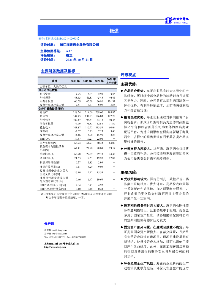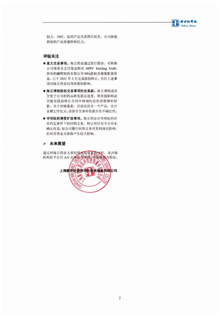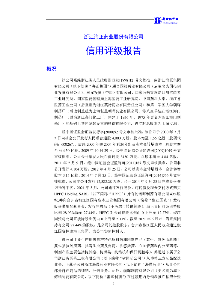 新世纪:浙江海正药业股份有限公司主体信用评级报告.pdf