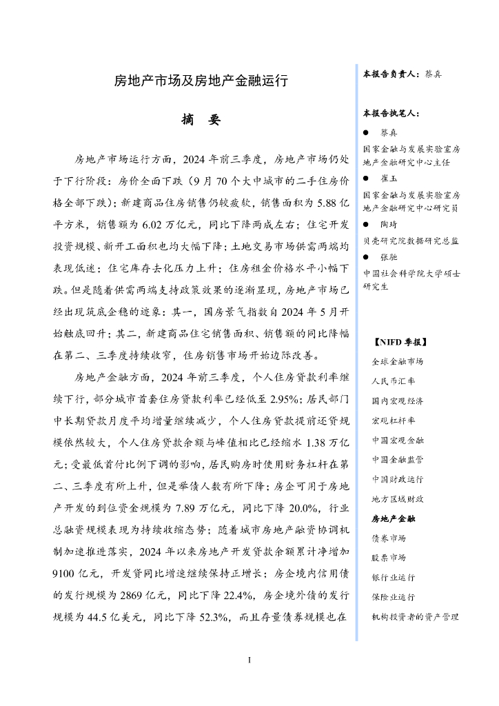 NIFD季报:房地产市场及房地产金融运行——2024年Q3房地产金融.pdf
