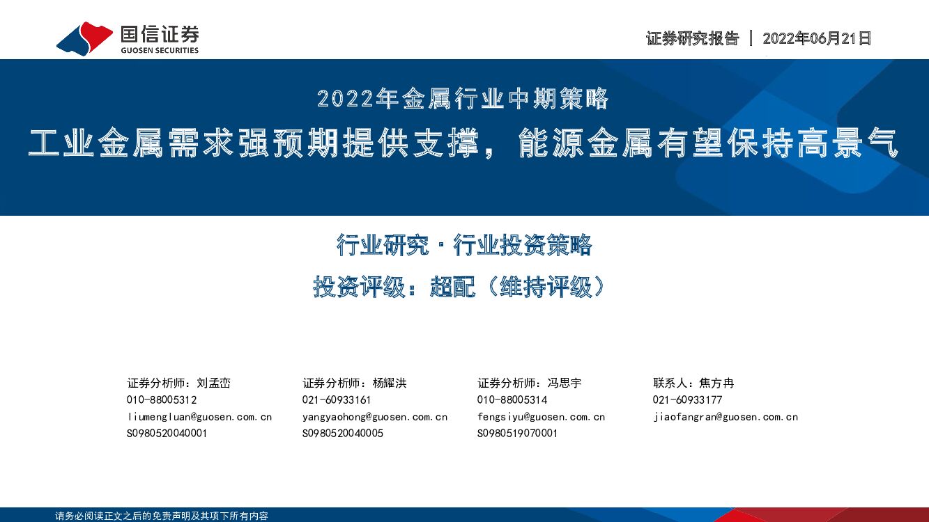 国信证券:2022年金属行业中期策略:工业金属需求强预期提供支撑,能源金属有望保持高景气.pdf