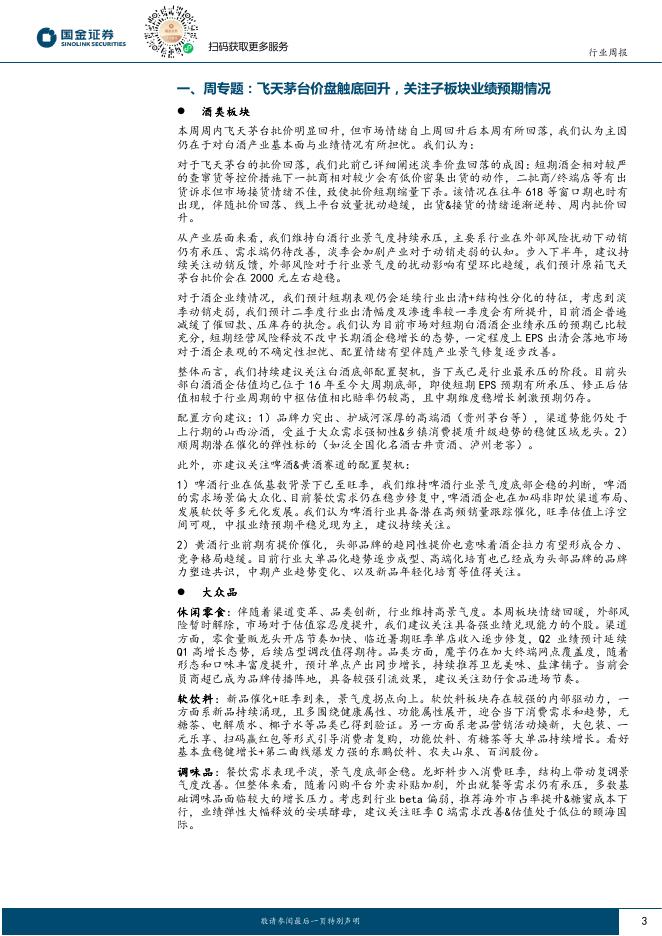 国金证券:食品饮料行业研究:飞天茅台价盘触底回升,关注子板块业绩预期情况.pdf
