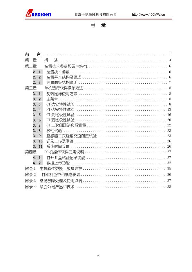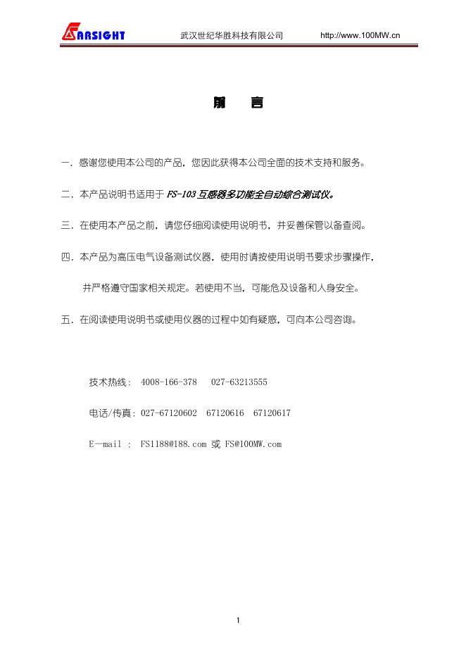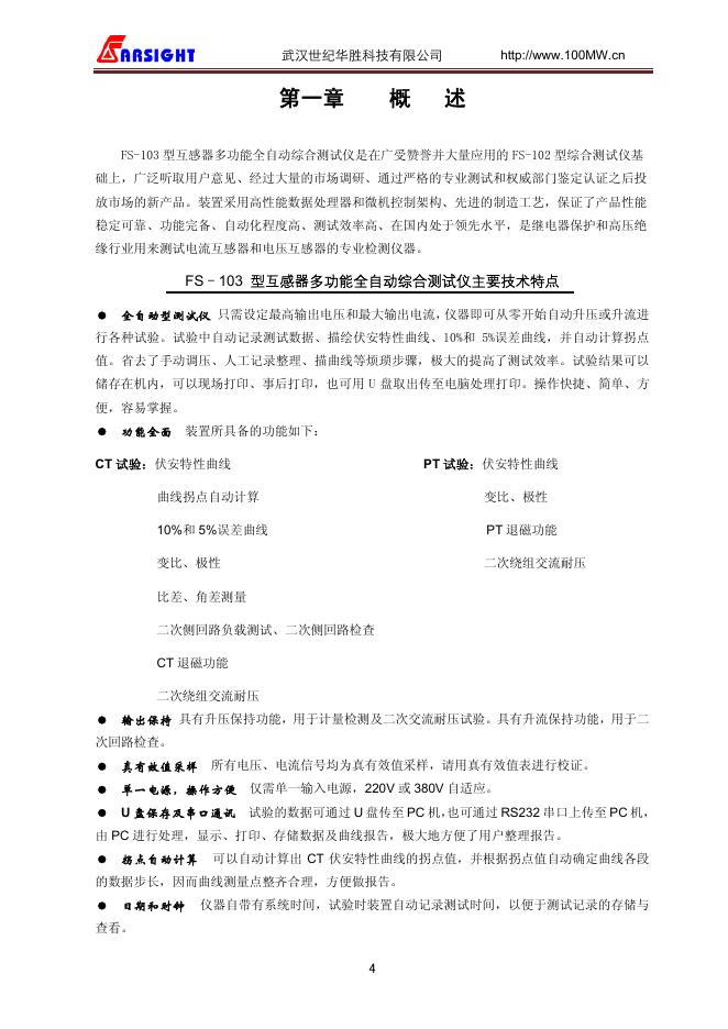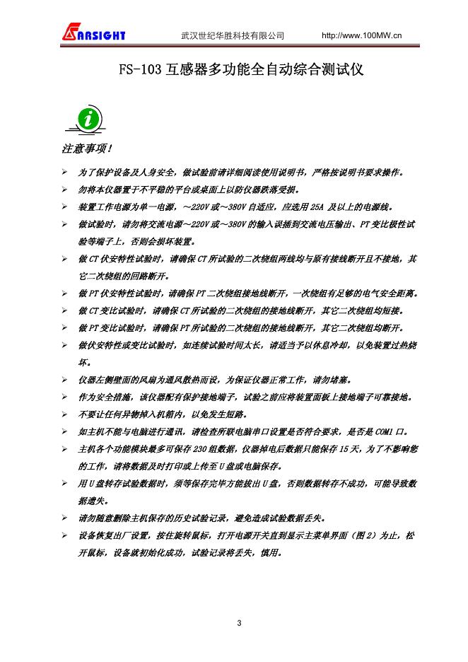 武汉世纪华胜科技有限公司 FS-103 互感器多功能全自动综合测试仪 用户指南.pdf