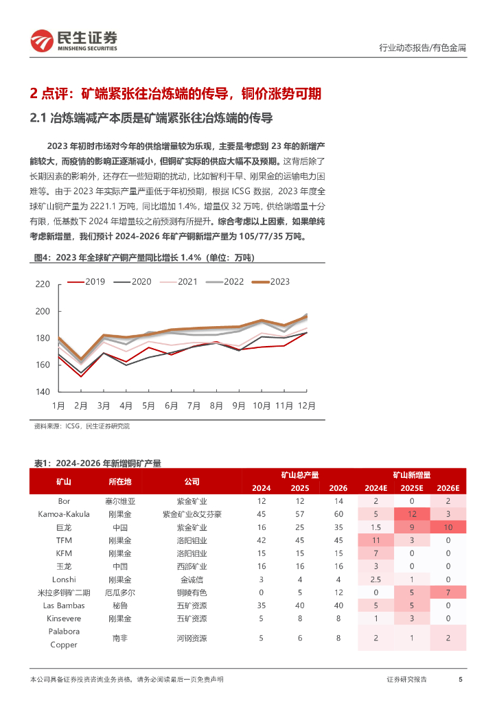 民生证券:铜行业行业动态:矿端紧张到铜产量下降传导即将完成,铜价进入主升浪.pdf