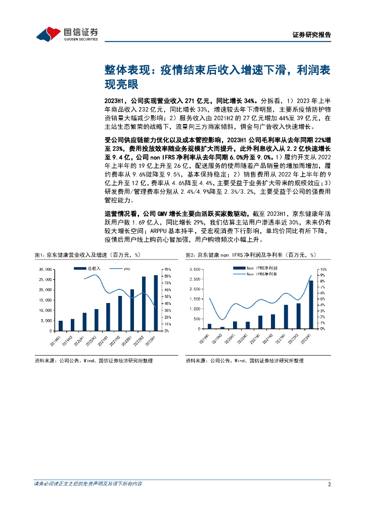 国信证券:京东健康(06618)港股公司研究报告-2023H1财报点评:高基数下收入增速下降,利润表现亮眼.pdf