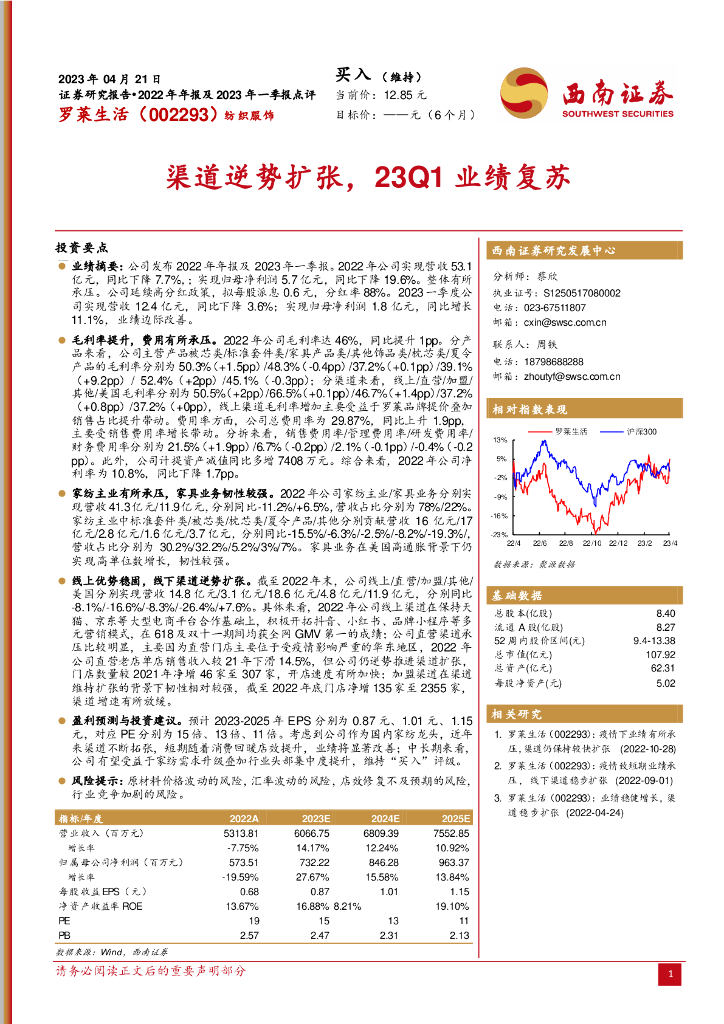 西南证券:罗莱生活(002293)-渠道逆势扩张,23Q1业绩复苏.pdf