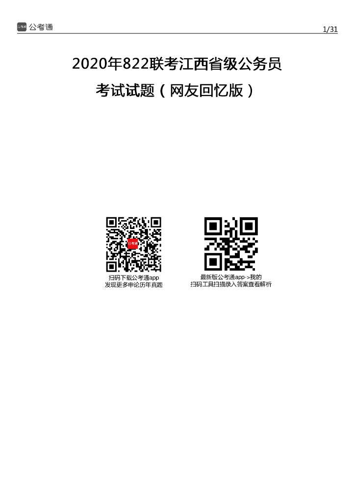 2020年江西公务员考试行测试题及答案(省级).pdf