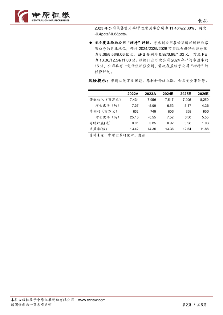 中原证券:三全食品(002216)-2023年年报及2024年一季报点评:短期业绩承压,餐饮渠道表现亮眼.pdf