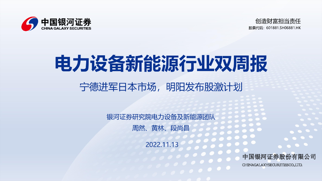 中国银河:电力设备新能源行业双周报:宁德进军日本市场,明阳发布股激计划.pdf