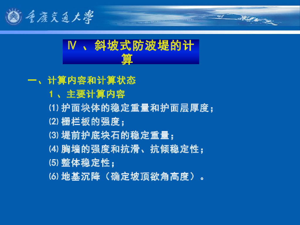 《港口水工建筑物》教学课件-斜坡式防波堤的计算.pdf