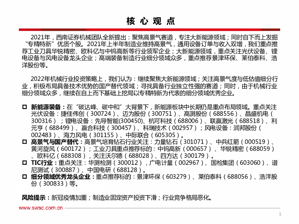 西南证券:机械行业2022年投资策略:继续聚焦大新能源领域,布局高景气赛道.pdf