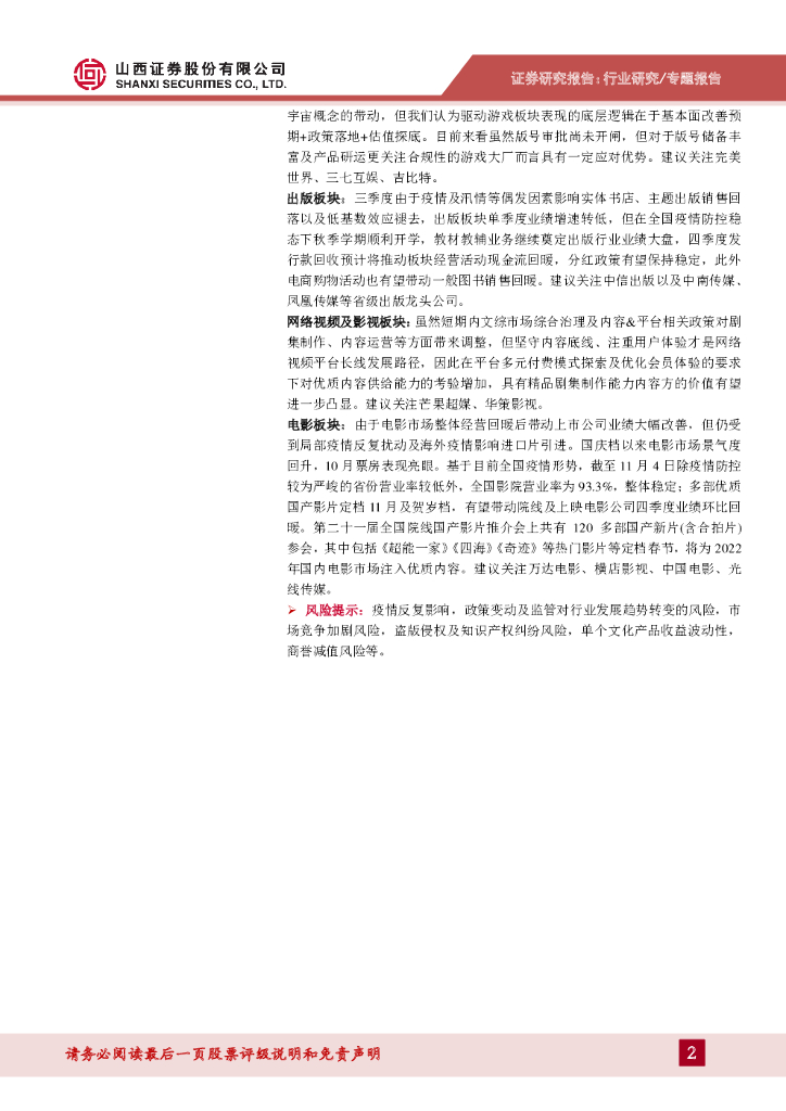 山西证券:传媒行业2021年行业三季报总结:行业延续回暖态势,疫情反复仍具阶段性影响.pdf