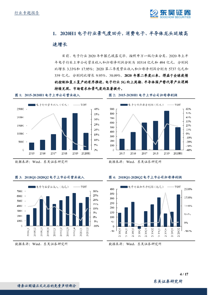东吴证券:电子:2020H1电子行业景气度回升,消费电子、半导体龙头延续高速增长.pdf