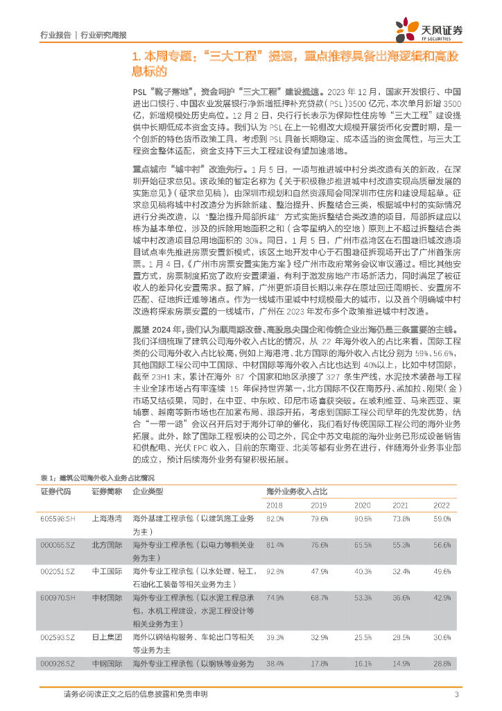 天风证券:建筑装饰行业研究周报:“三大工程”提速,重点推荐具备出海逻辑和高股息标的.pdf