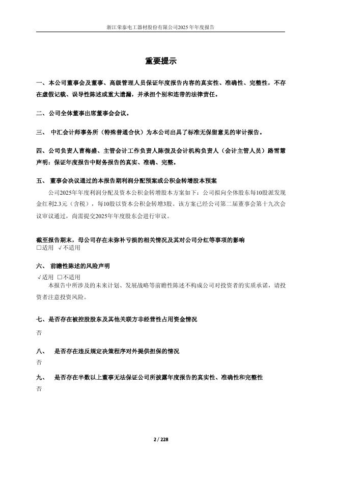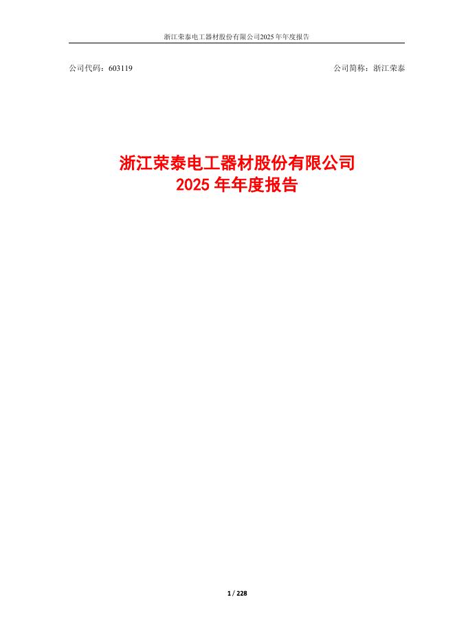 603119-浙江荣泰:浙江荣泰电工器材股份有限公司2025年年度报告.pdf
