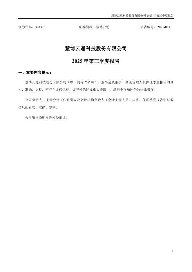 301316-慧博云通:2025年三季度报告.pdf
