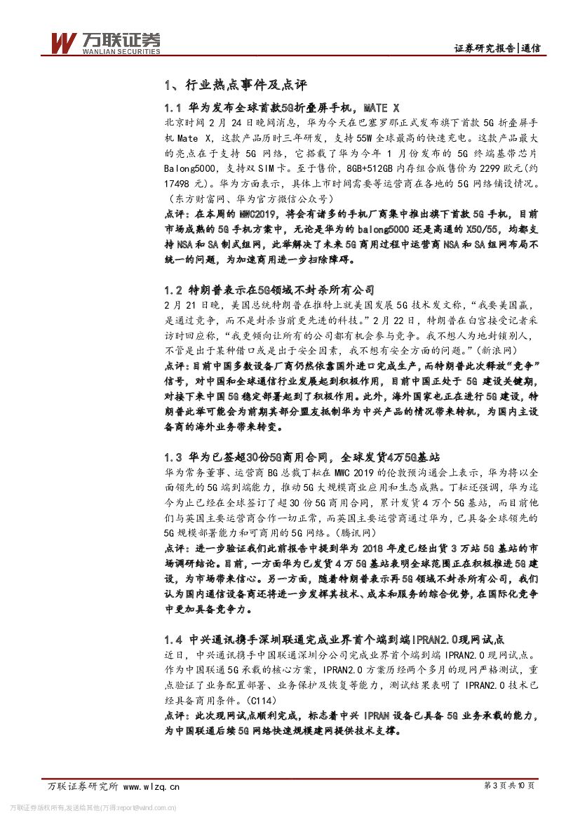 万联证券:通信行业周观点:板块持续大涨,MWC将一进步吹响5G号角.pdf