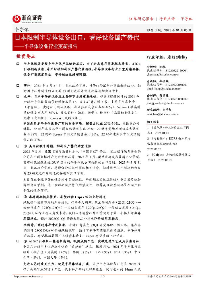 浙商证券:半导体设备行业更新报告:日本限制半导体设备出口,看好设备国产替代.pdf