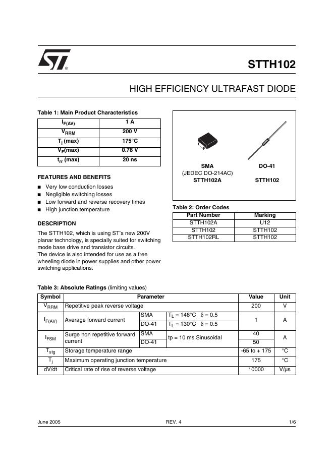 STMICROELECTRONICS STTH102 数据手册.pdf