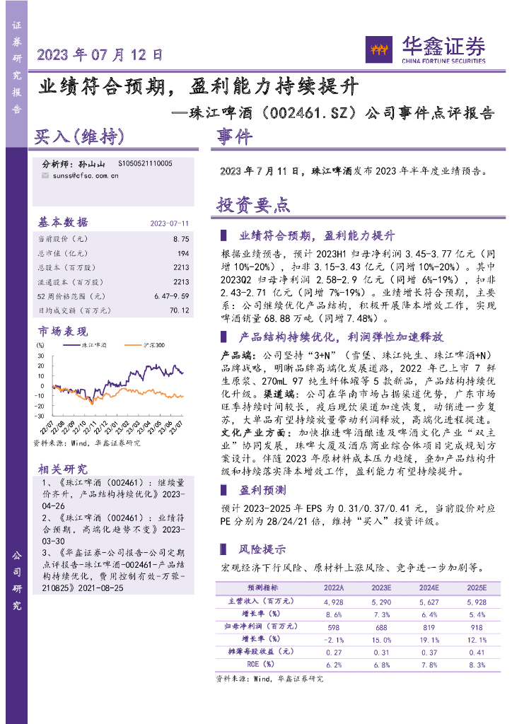 华鑫证券:珠江啤酒(002461)-公司事件点评报告:业绩符合预期, 盈利能力持续提升.pdf
