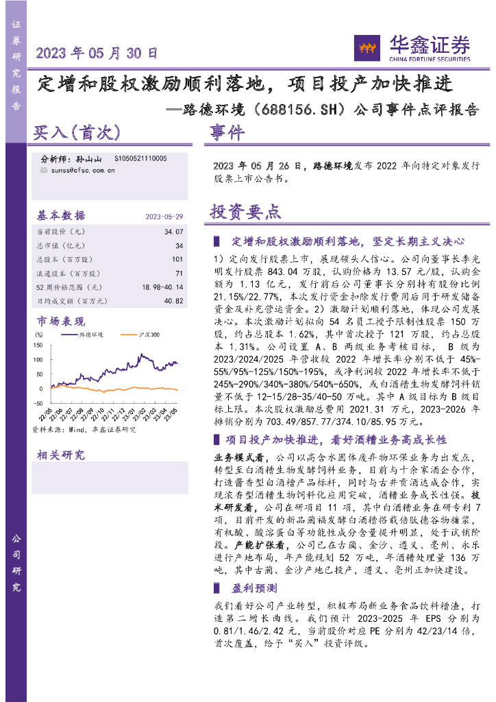 华鑫证券:路德环境(688156)-公司事件点评报告:定增和股权激励顺利落地,项目投产加快推进.pdf