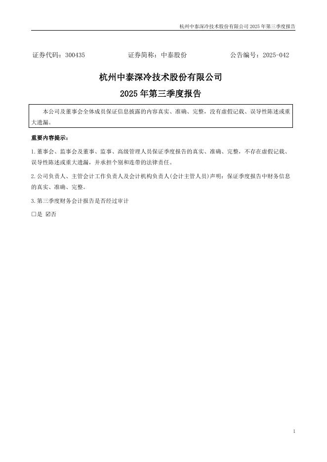 300435-中泰股份:2025年三季度报告.pdf