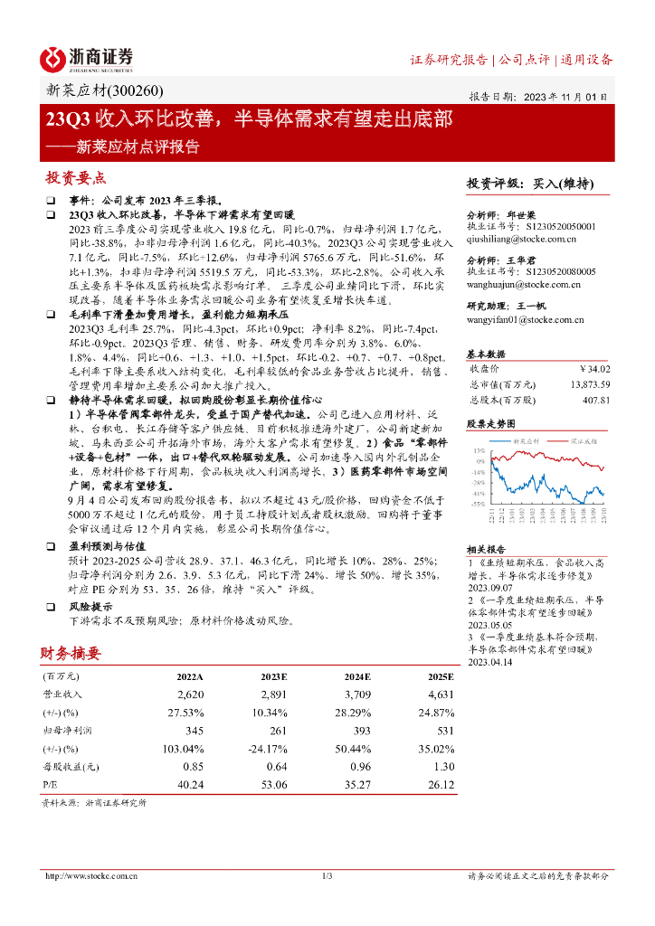 浙商证券:新莱应材点评报告:23Q3收入环比改善,半导体需求有望走出底部.pdf