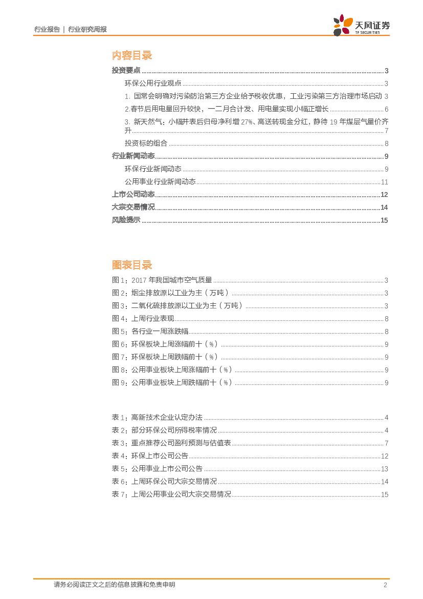 天风证券:公用事业行业研究周报:污染防治第三方企业减按15%所得税率征收;一二月合计发、用电量实现小幅正增长.pdf