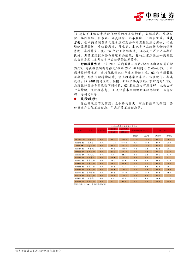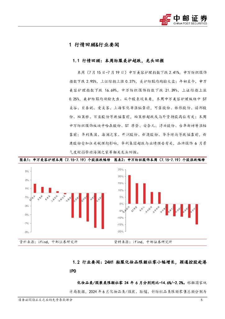 中邮证券:美容护理&纺织服饰周报:化妆品鞋服社零H1弱增长,华利集团H1收入业绩同增20%-30%.pdf
