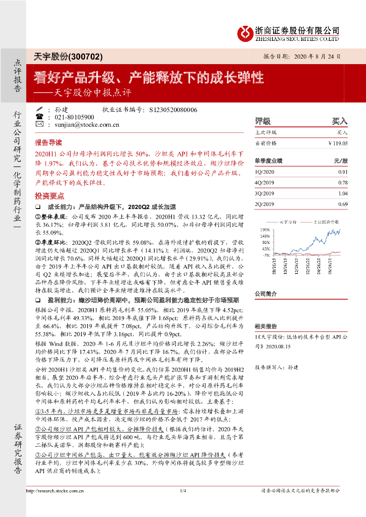 浙商证券:天宇股份中报点评:看好产品升级、产能释放下的成长弹性.pdf