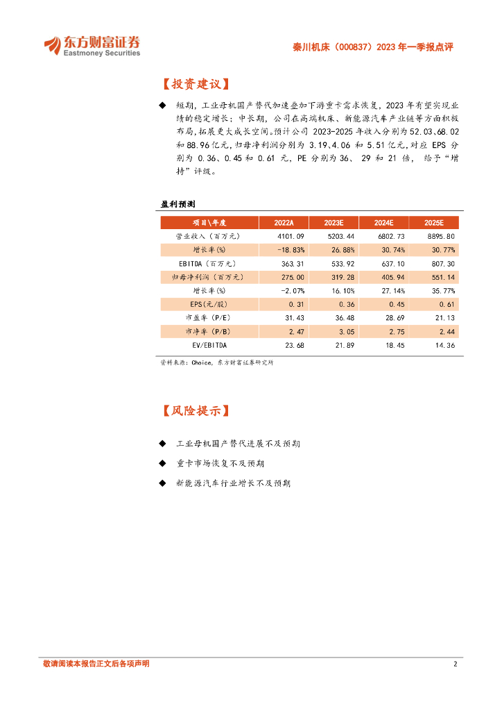东方财富证券:秦川机床(000837)-2023年一季报点评:机床主业稳步向上,机器人关节减速器未来可期.pdf