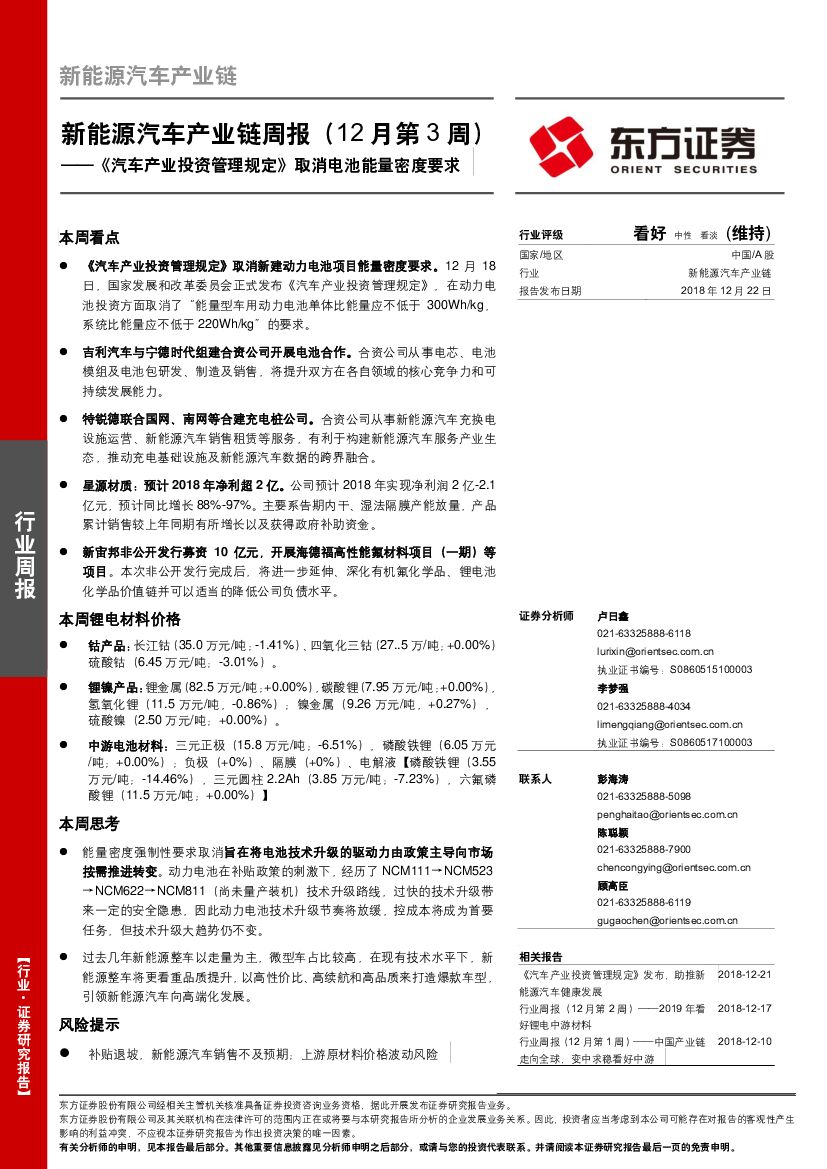 东方证券:《汽车产业投资管理规定》取消电池能量密度要求:新能源汽车产业链周报(12月第3周).pdf