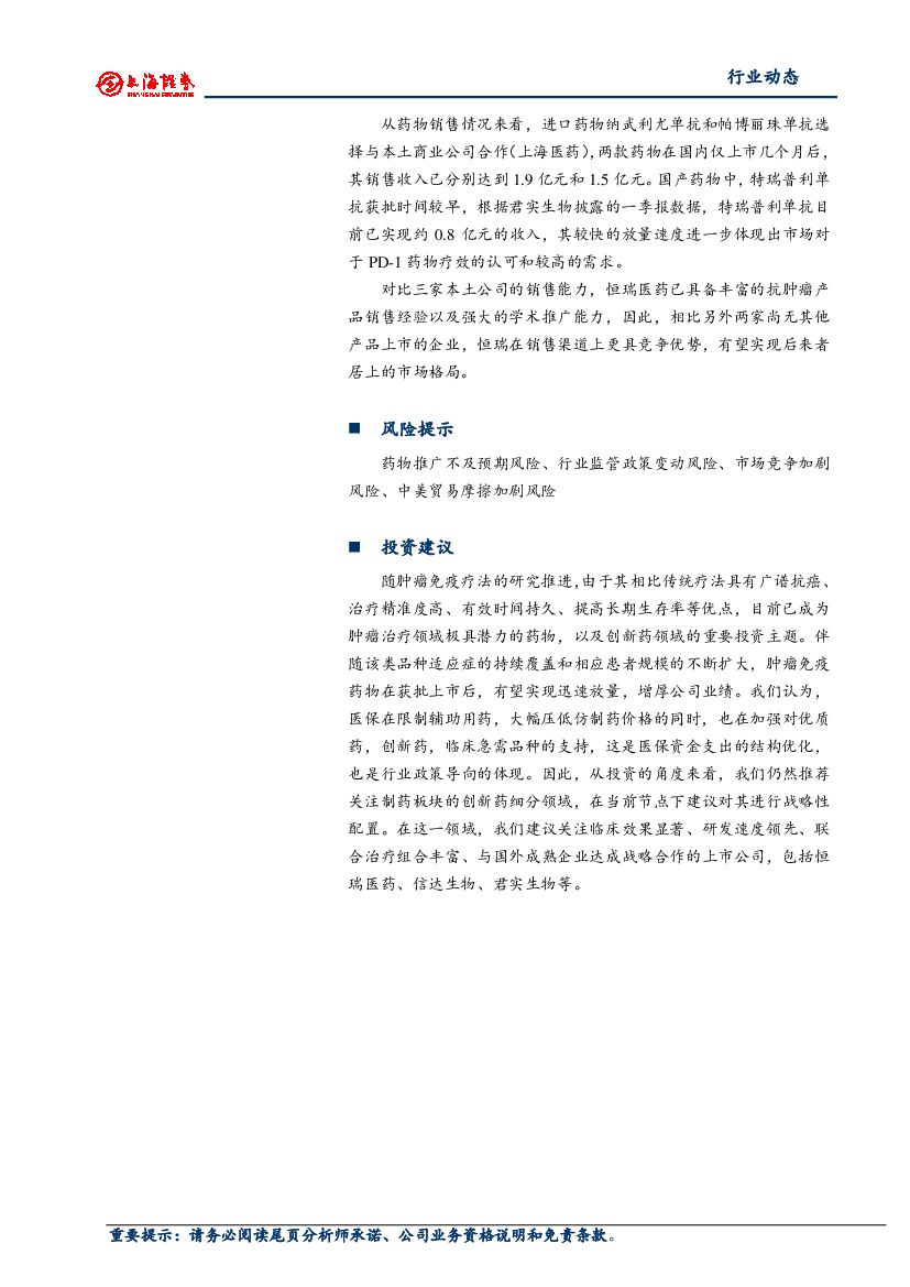 上海证券:生物医药行业动态:恒瑞医药PD-1单抗药物正式获批上市.pdf
