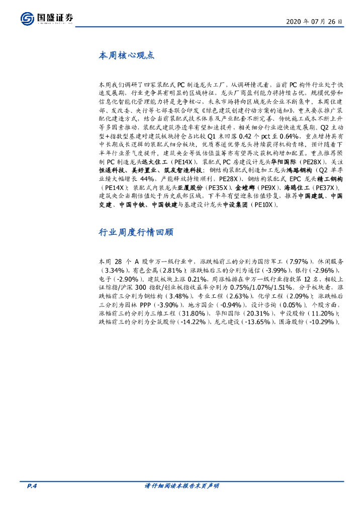 国盛证券:建筑装饰行业周报:PC构件工厂调研总结:装配式发展是长期趋势,龙头企业将持续占优.pdf