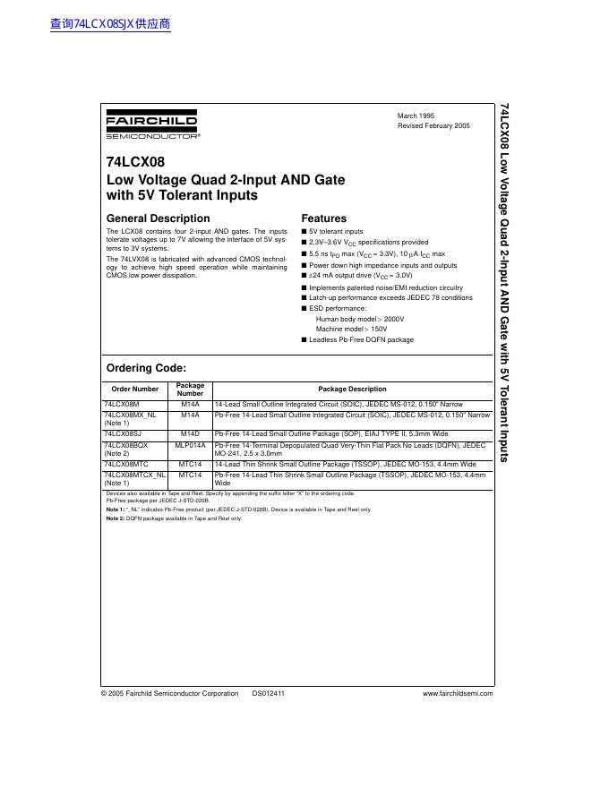FAIRCHILD 74LCX08 Low Voltage Quad 2-Input AND Gate with 5V Tolerant Inputs 数据手册.pdf