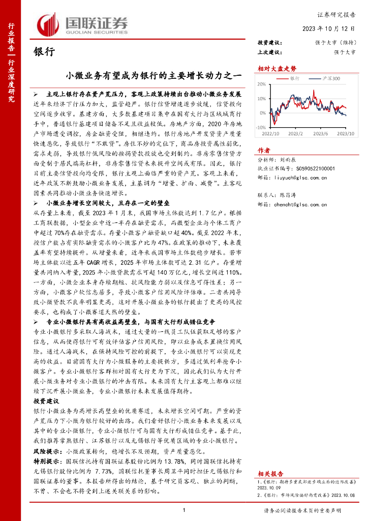 国联证券:银行:小微业务有望成为银行的主要增长动力之一.pdf