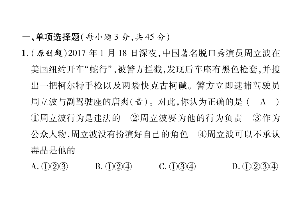 八年级道德与法治上册名师同步作业课件:第3单元达标测试题 (25张).ppt