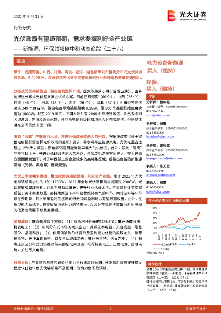 光大证券:新能源、环保行业领域碳中和动态追踪(二十八):光伏政策有望超预期,需求提振利好全产业链.pdf