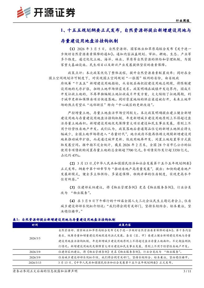 开源证券:房地产行业周报:十五五规划纲要正式发布,住建部表态坚决稳住楼市.pdf