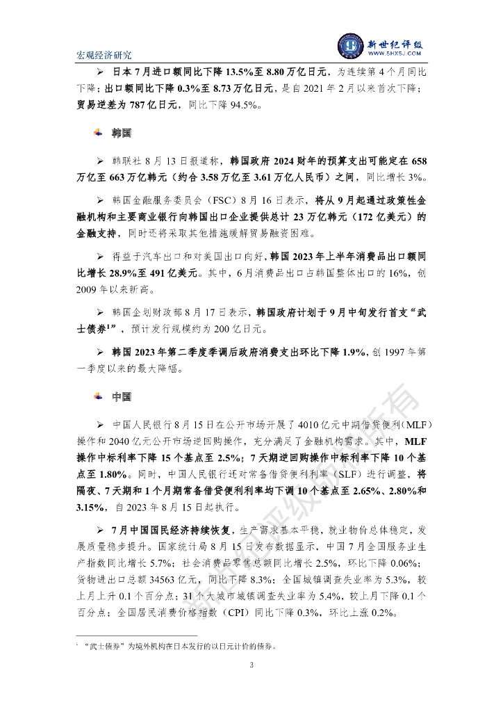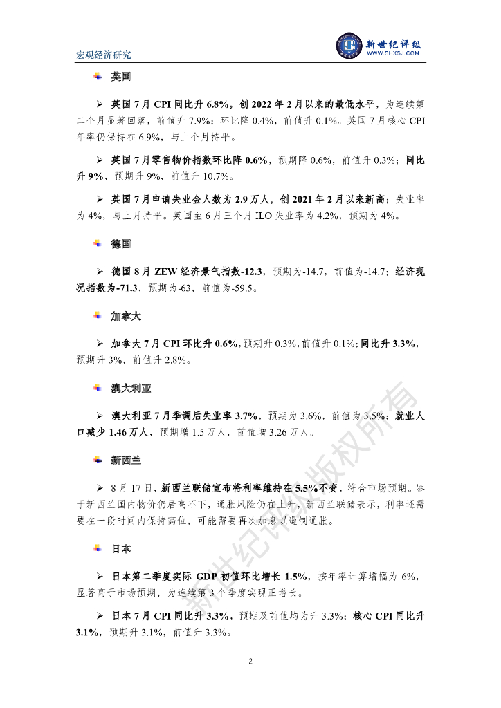 新世纪评级:英国CPI大幅回落 中国央行下调政策工具利率-全球宏观经济周报(2023/8/12-8/18).pdf