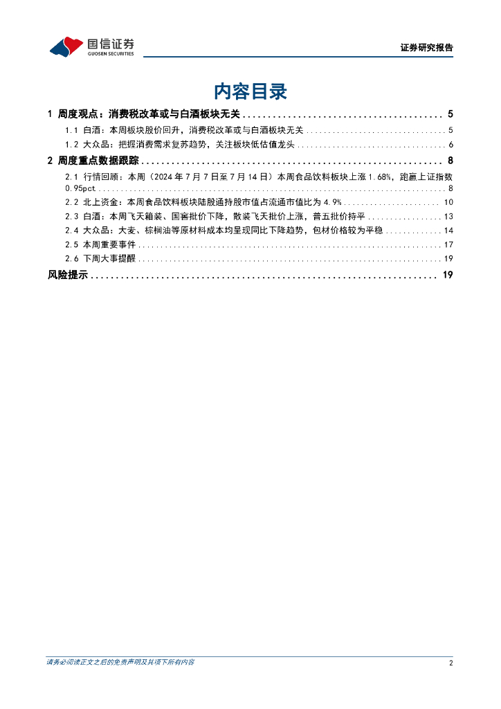 国信证券:食品饮料行业周报(24年第29周):消费税改革或与白酒板块无关,关注大众品板块低估值龙头.pdf